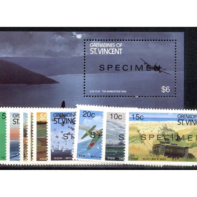Saint Vincent 1990 WWII, u/m SG657-66+MS667 SPECIMEN