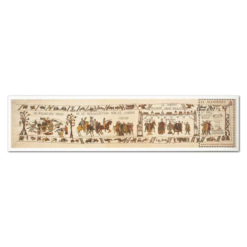 2014 Alderney - Bayeux Tapestry Final Panel £3 M/S - Printed on Cotton with Certificate