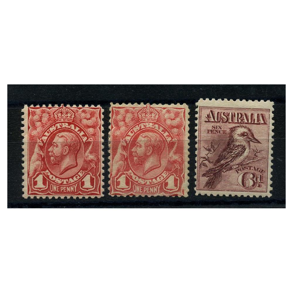 Australia 1913-14 1d, 6d Definitives, inc both shades 1d (3v), fresh mtd mint. SG17+c+19