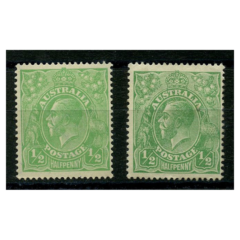 Australia 1914-20 1/2d Green & yellow-green, both fresh mtd mint. SG20b+c