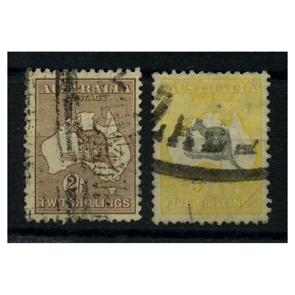 Australia 1916-27 2/-, 5/- Narrow Crown Roos, good used. SG41-42