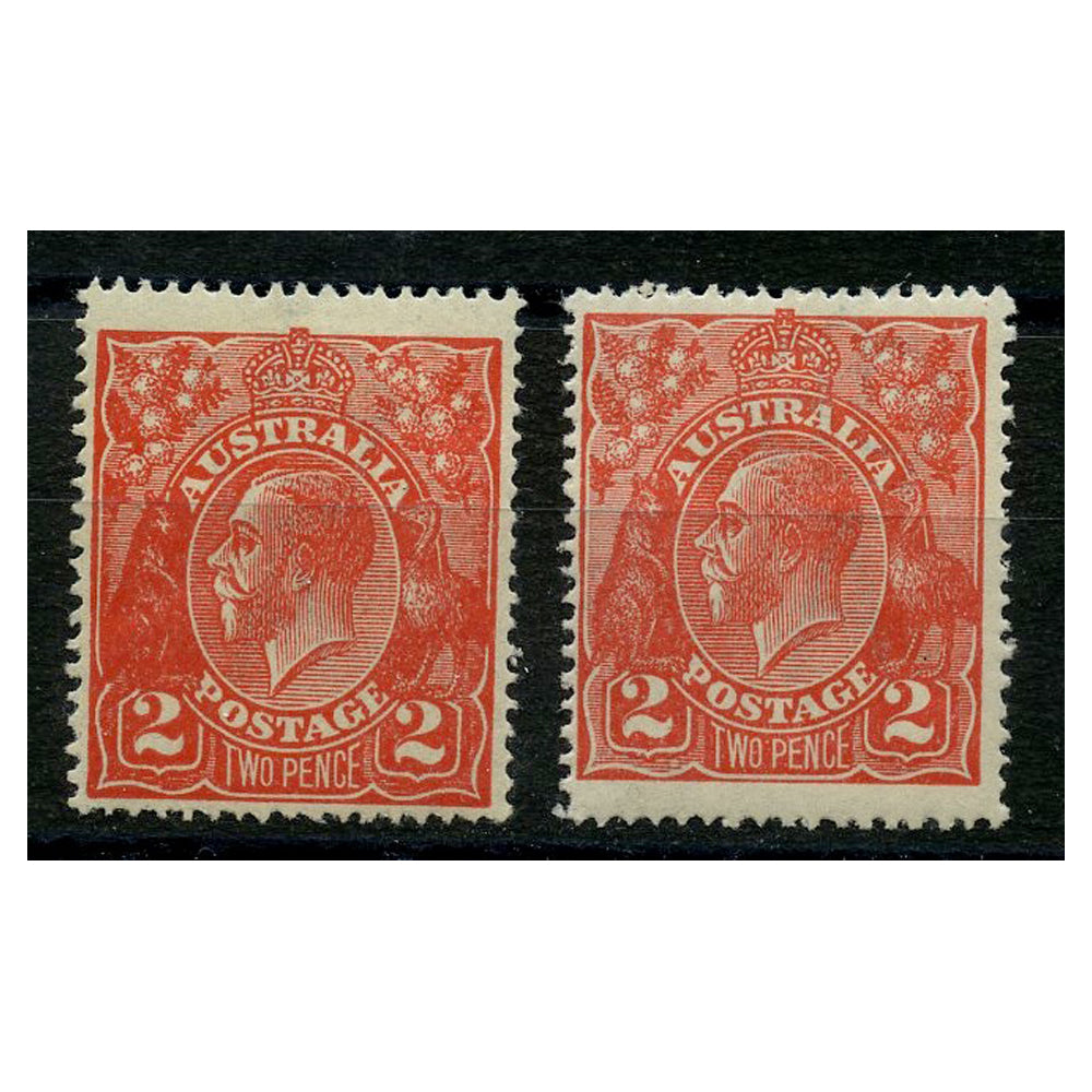 Australia 1922-23 2d Bright & dull rose-scarlet, both fresh mtd mint. SG63+a