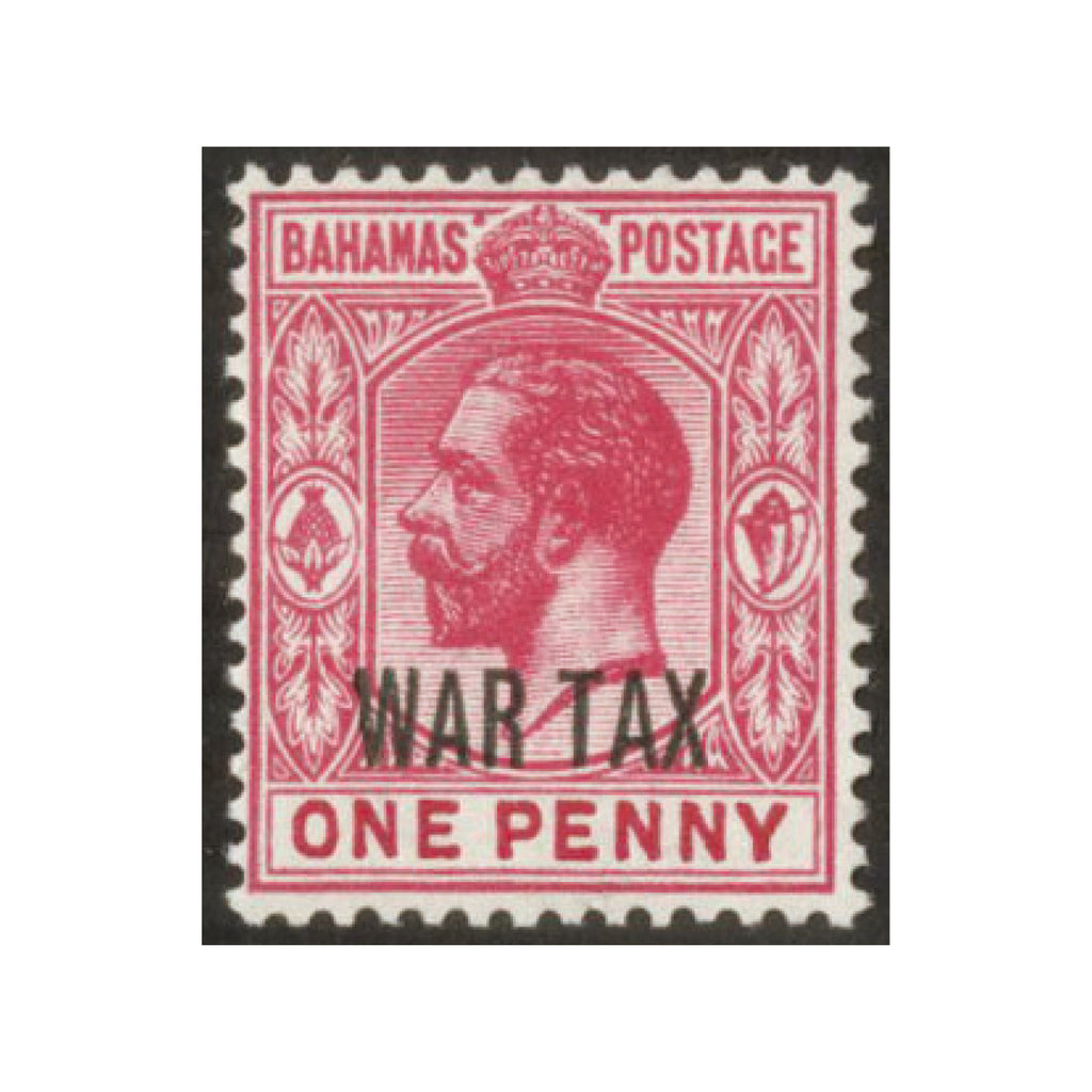 Bahamas S.G.97a 1918 1d carmine 'War Tax' opt, Watermark Sideways, mm.
