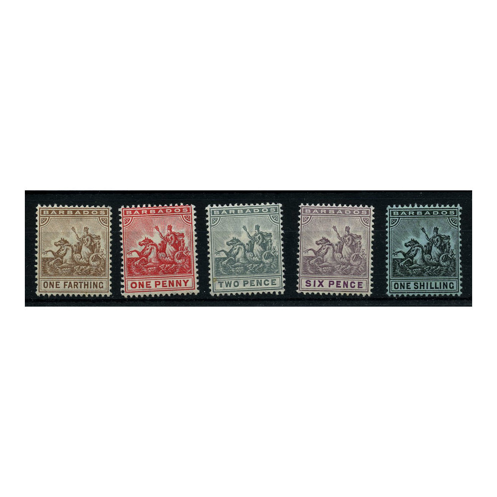 Barbados 1909-10 Definitive set, fine mtd mint. SG163-69