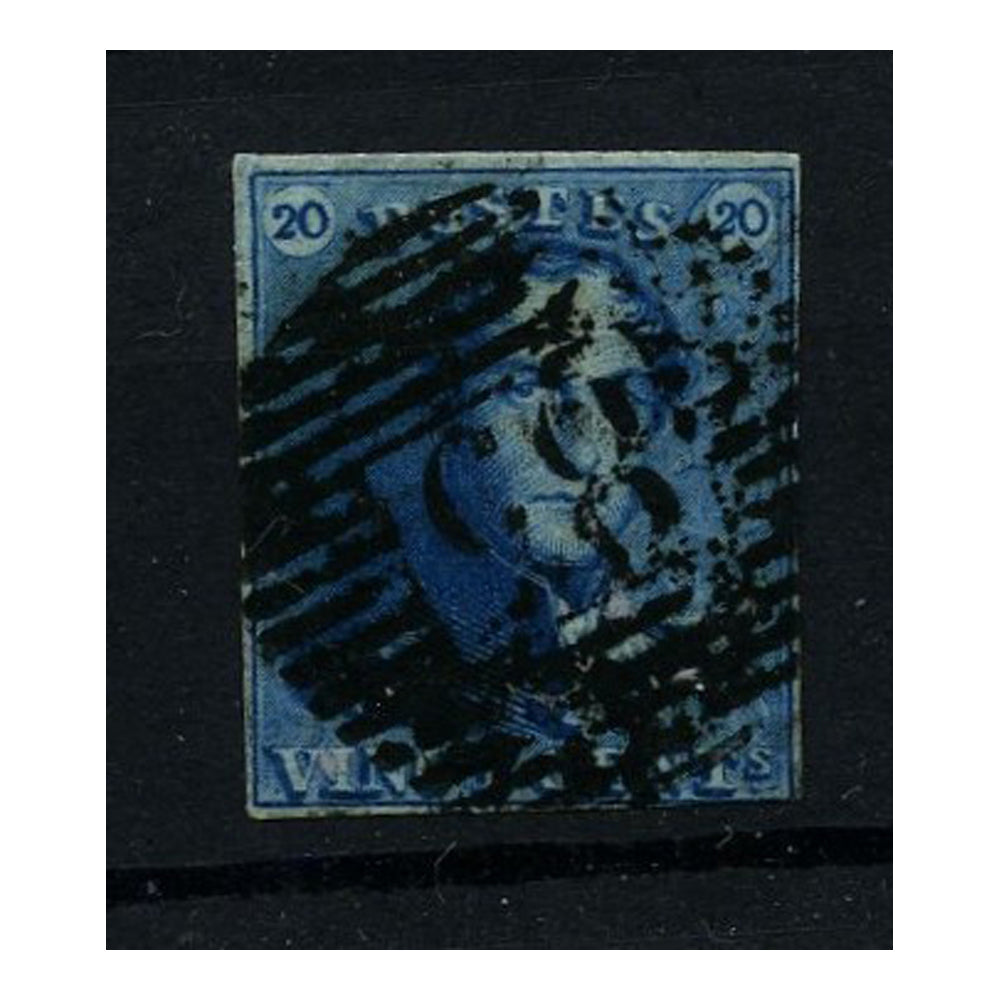 Belgium 1849 20c Blue ('Epaulettes'), near 4 margin, good used. SG2a