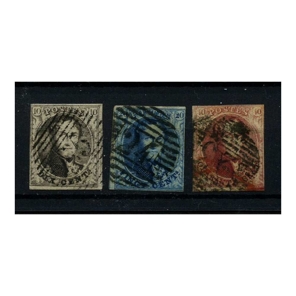 Belgium 1851 'Medallions' trio, WMK without frame, 2-3 margins, good to fine used. SG6-8