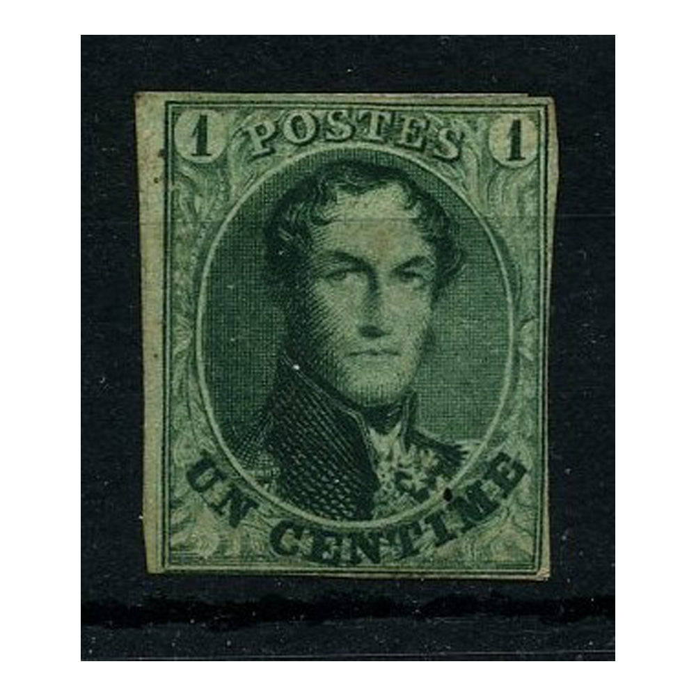 Belgium 1861 1c Green, near 4 margin, mtd mint, gum weak. SG12
