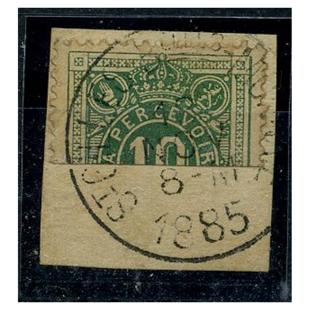 Belgium 1870 10c Green bisected tied by neat 1885 cds on small piece, Cat.£600 on cover. SGD63a