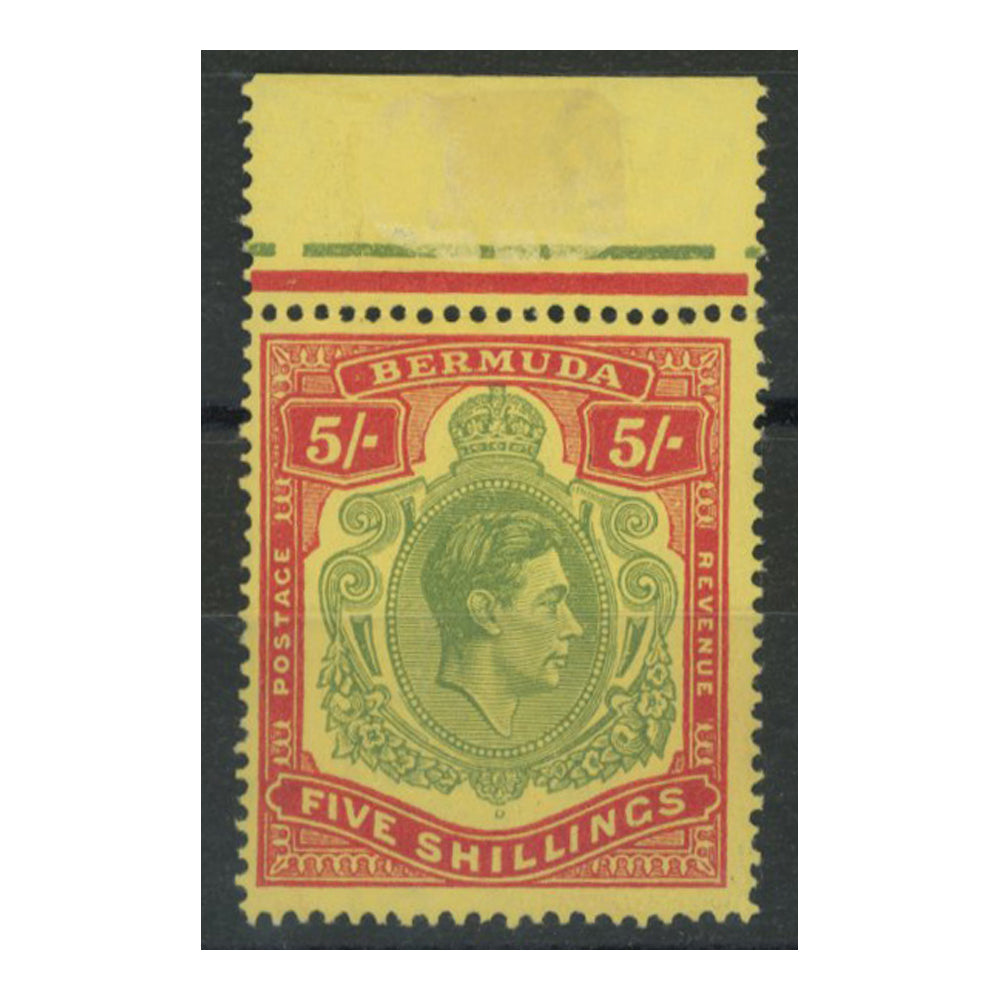 Bermuda 1943-53 5/- Pale bluish green & carmine-red/pale yellow perf 14 (Ord) fine u/m. SG118d