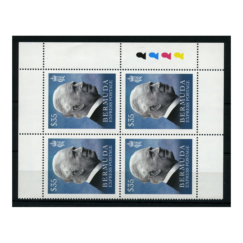 Bermuda 2023 $35 King Charles II, express post, traffic light plate block of 4, u/m.