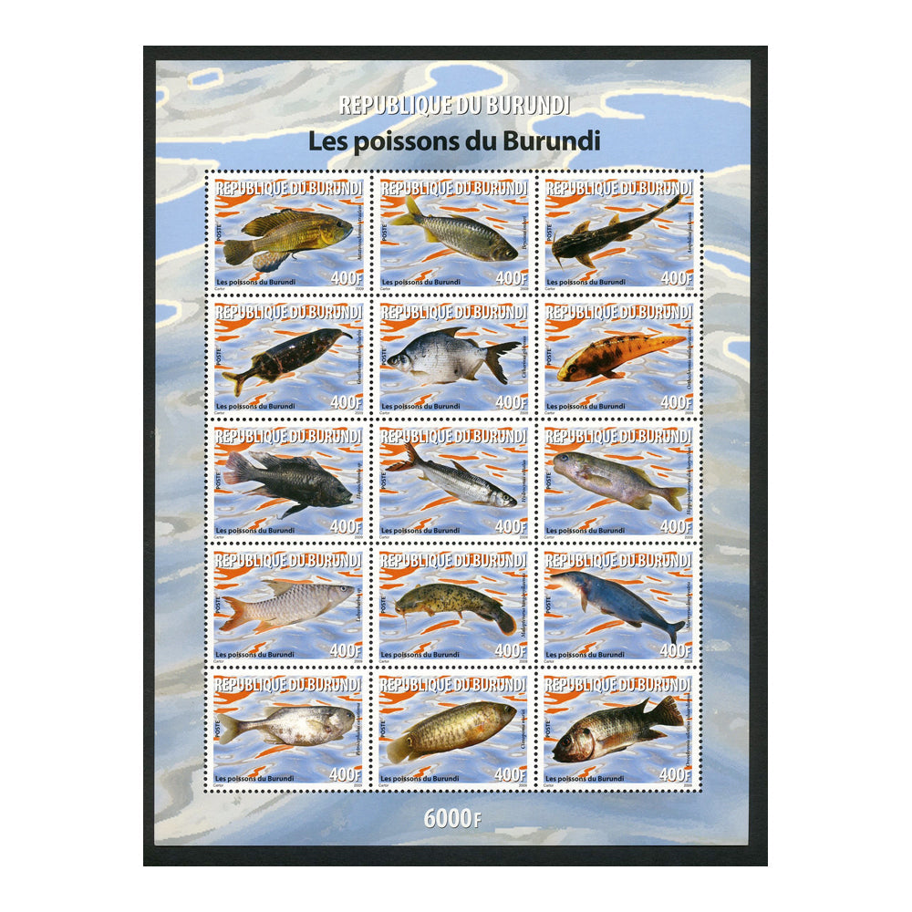 Burundi 2009 Fish, u/m. Scott 815 sheetlet of 15 values