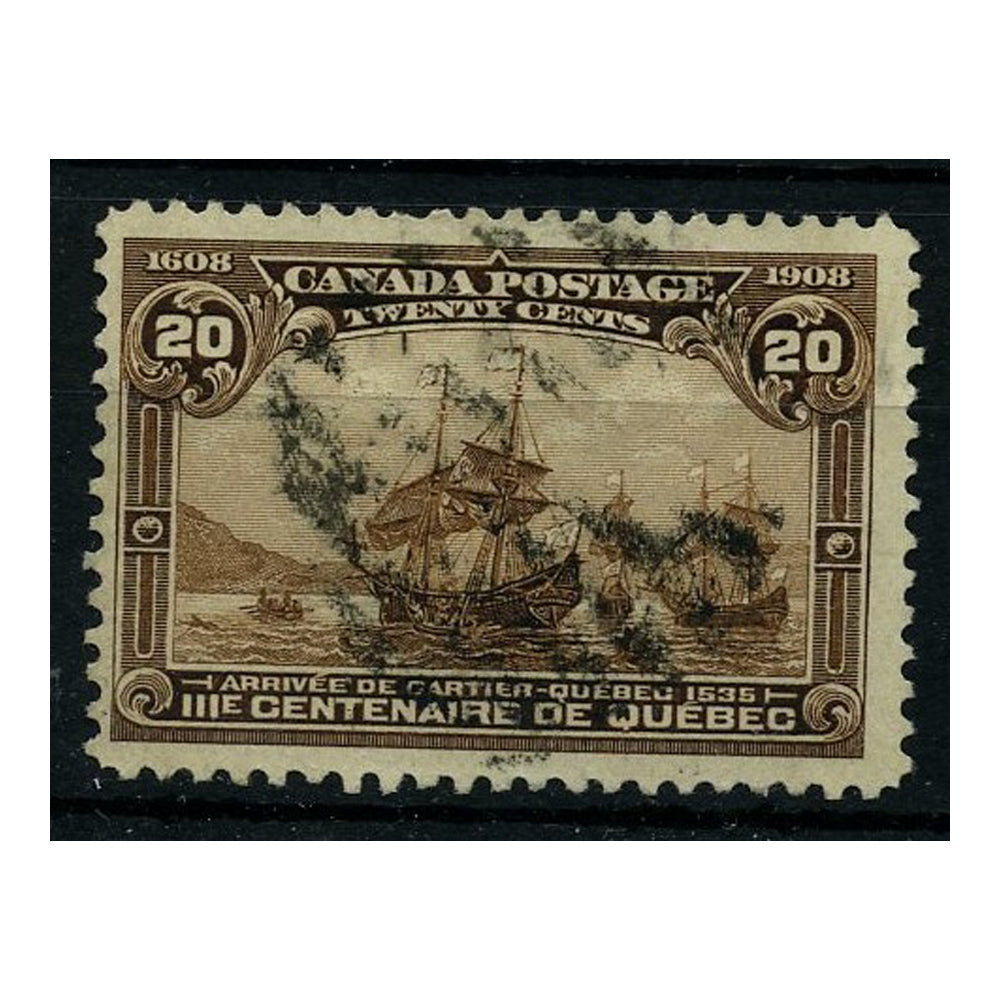 Canada 1908 20c Cariters arrival, fine used with tidy barred cancel. An exceptional example. SG195