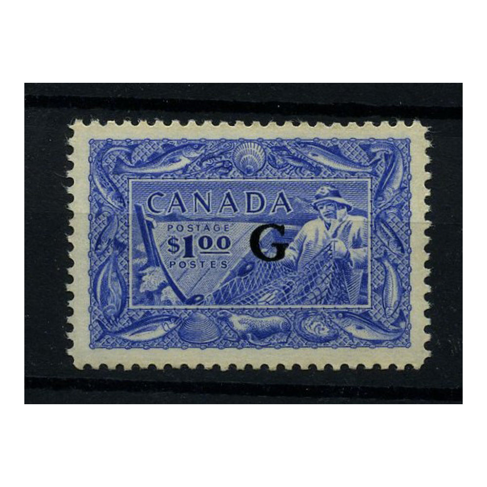 Canada 1950-51 $1 Fisherman ovpt G, lightly mtd mint. SGO192