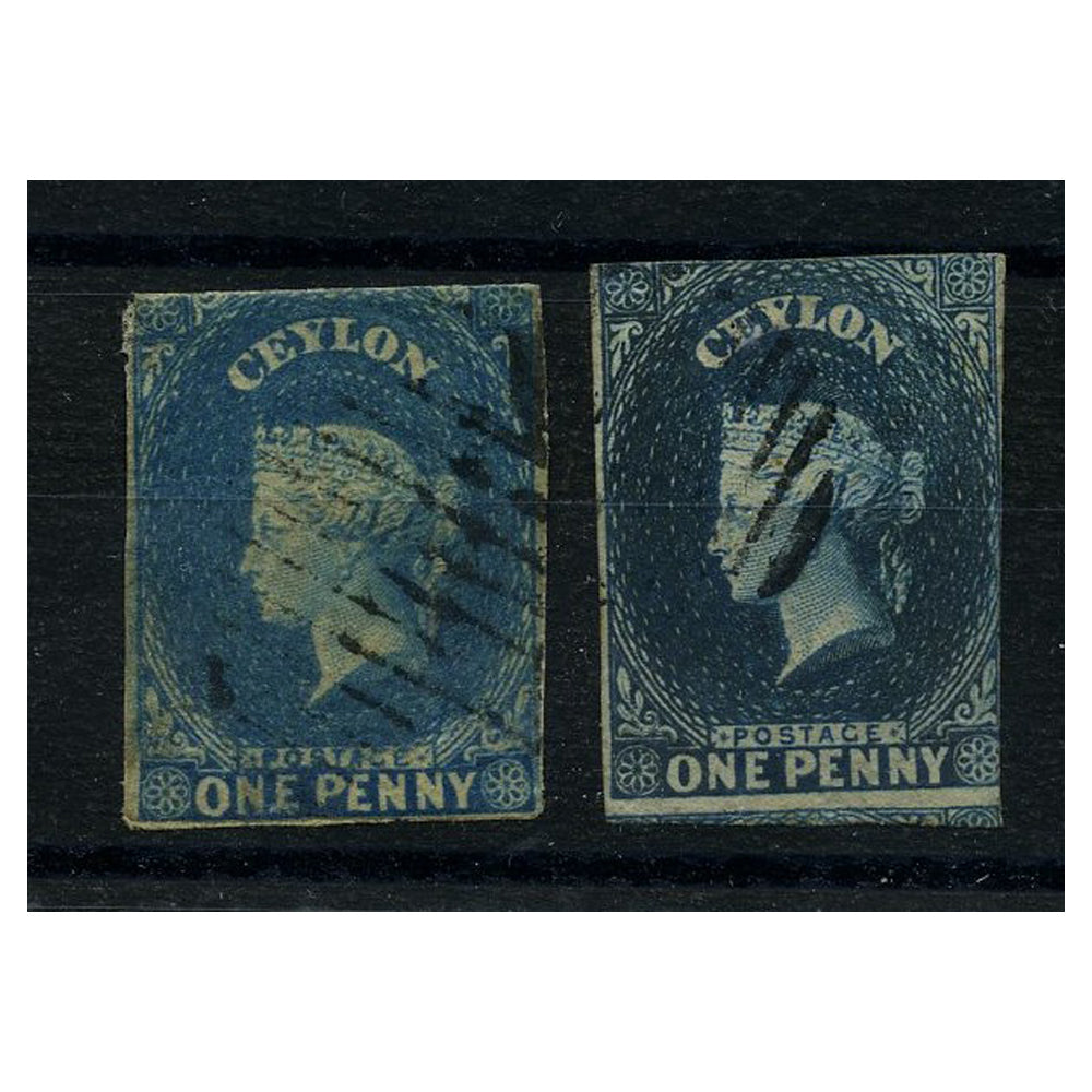 Ceylon 1857-59 1d Both shades, just 3 margins, good to fine used, SG2+a