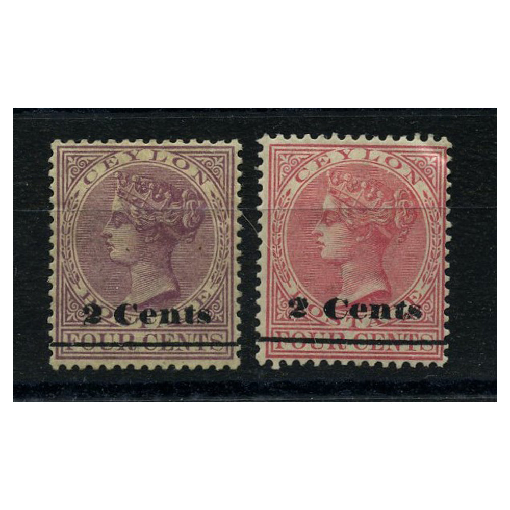 Ceylon 1888-90 2c Surch type 33, both colours, fresh mtd mint. SG206-07