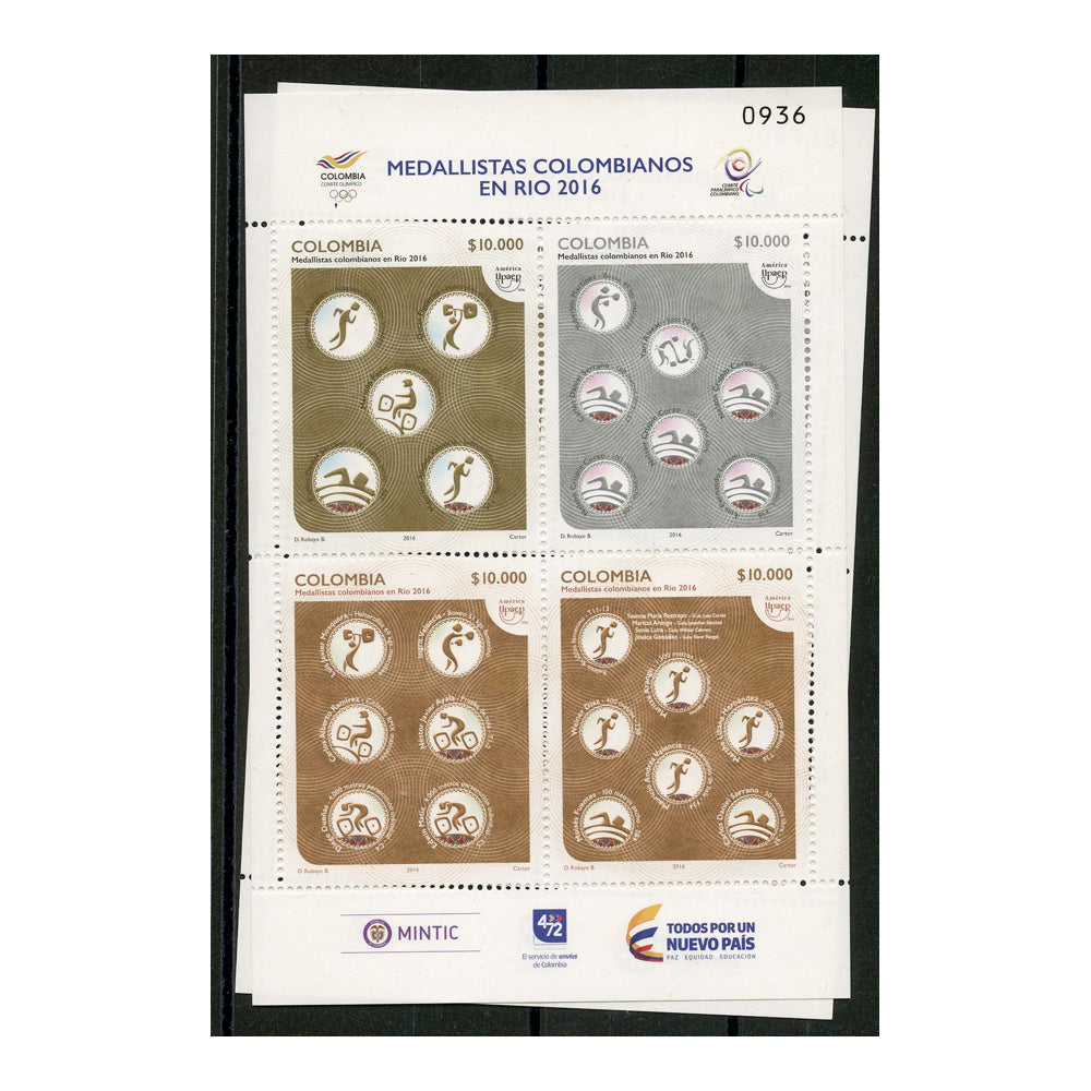 Colombia 2016 Olympic medallists, in miniature sheet from restricted printing, u/m. Cont SG2893-2900
