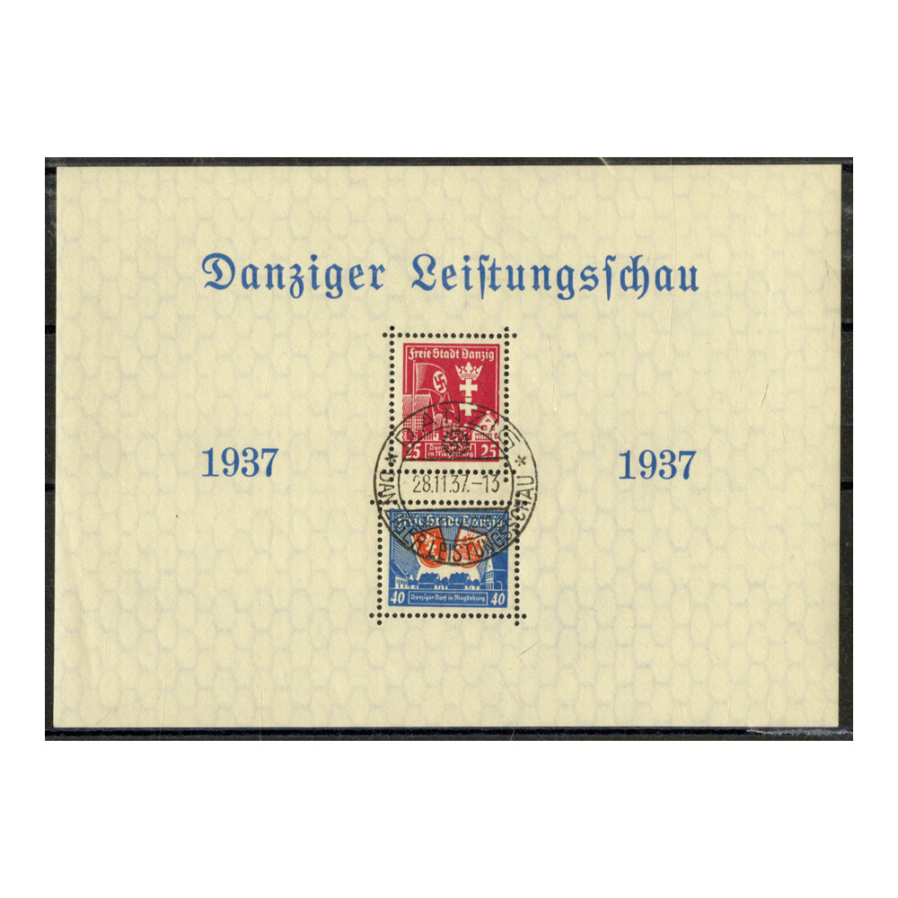 Danzig 1937 Productivity show sheetlet, fine cds used with first day expo cancel. SGMS254a
