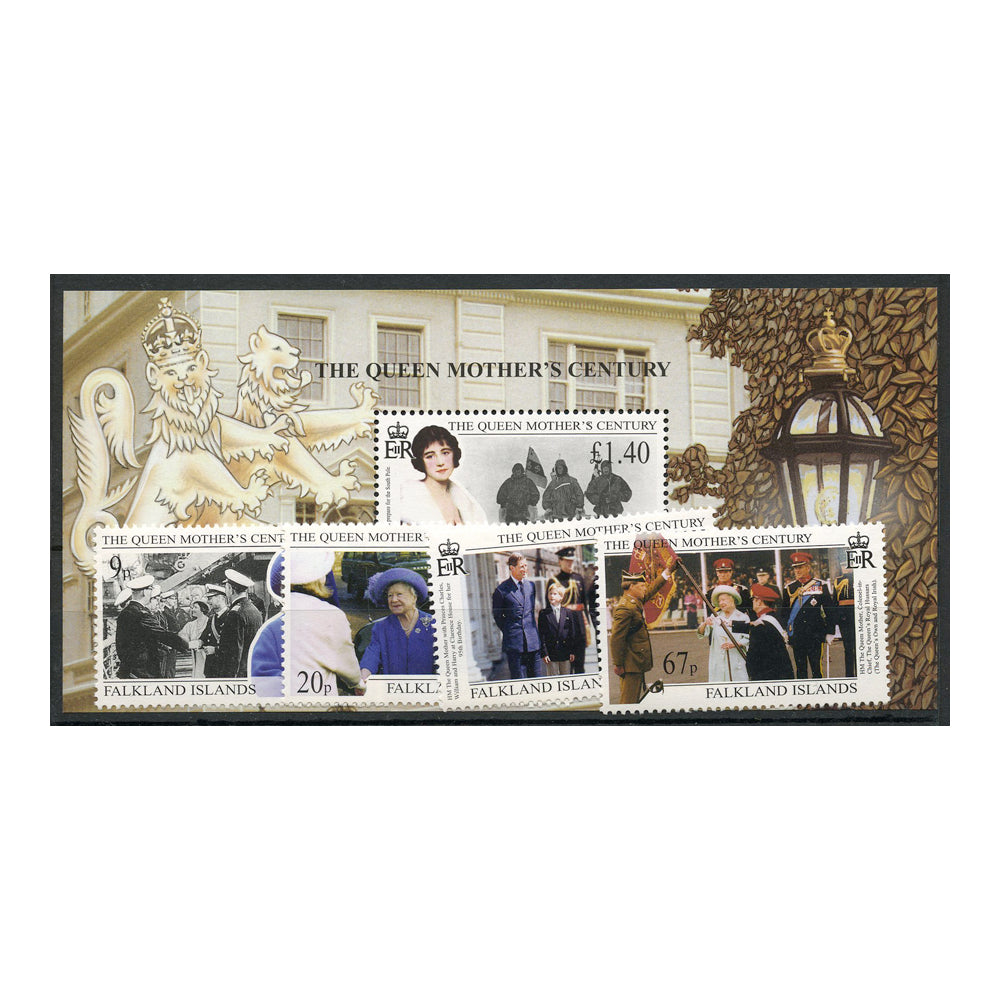 Falklands 1999 Queen Mothers 100th, u/m. SG843-6+ MS847