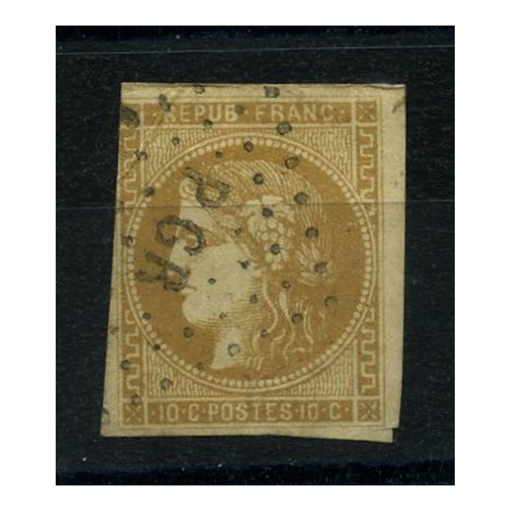 France 1852 10c Brown-bistre, 3 (near 4) margin, fine used, corner crease. SG3