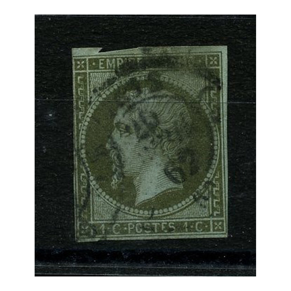 France 1853-61 1c Deep bronze-green / blue, 3 margins, good to fine used. SG43