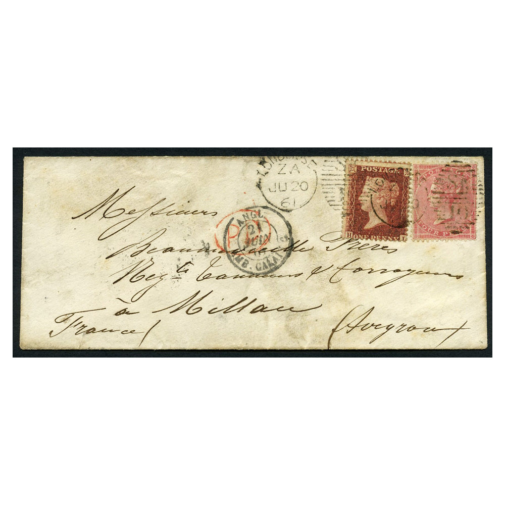 GB 1861 1d, 4d Mixed frank cover from London to Milan, marginal selvedge used to seal. SG42, 66a