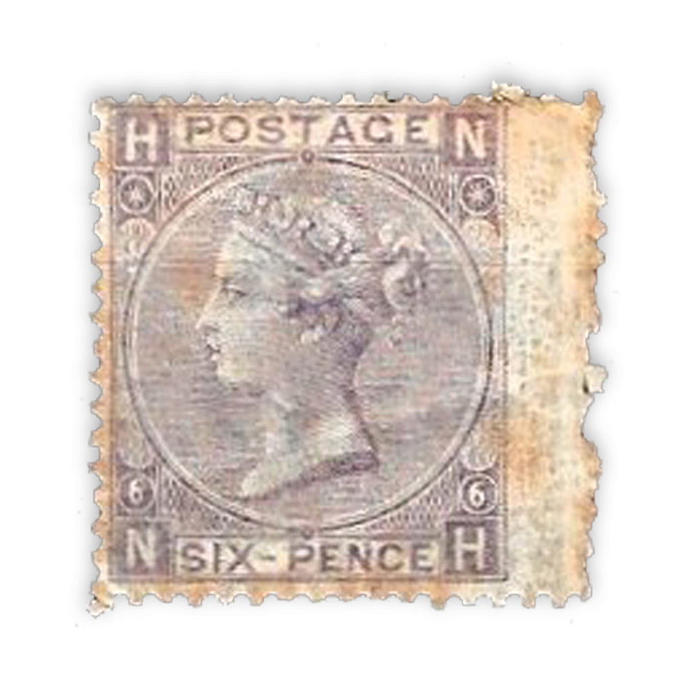 GB 1867-80 6d Deep-lilac, with hyphen, plate 6, wing margin example, mtd mint, faulty. SG105