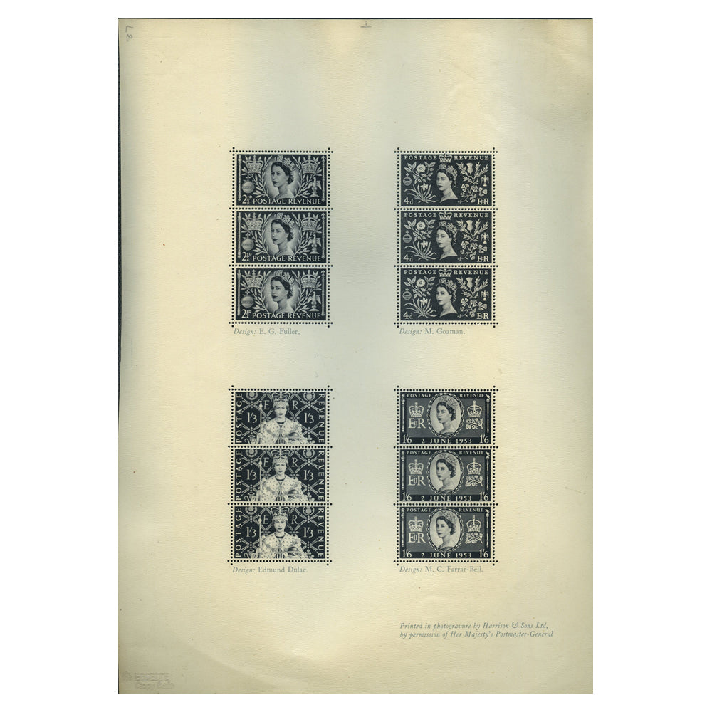 GB 1953 Coronation, black print sheet from Harrison, u/m. SG532-35
