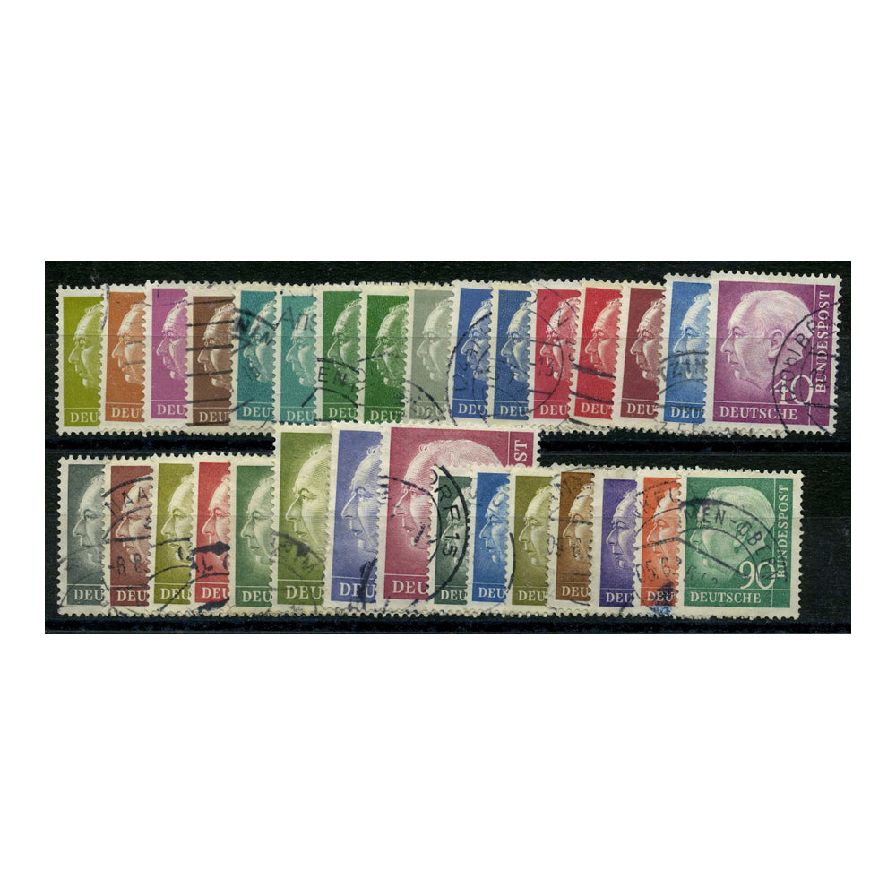 Germany 1954-60 Heuss definitive set + colour changes + fluorescent, cds used. SG1103-22i+etc