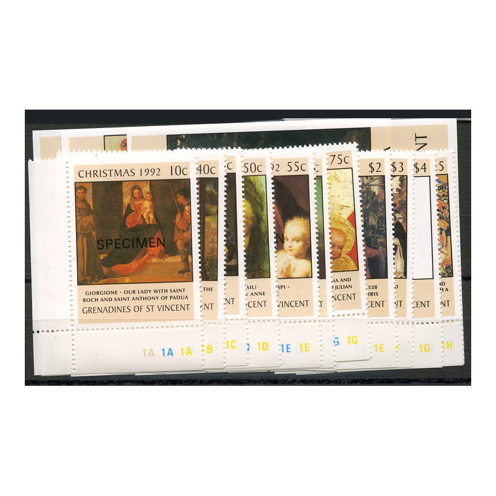 Grenadines 1992 Christmas - Religious Paintings, u/m. SG879-90+ MS891(3) SPECIMEN