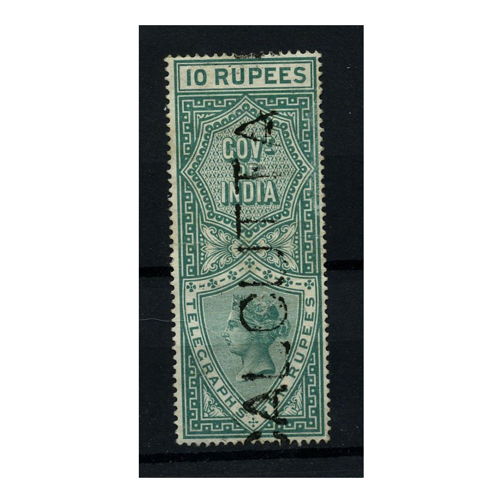 India (Telegraphs) 1891 10r Blue-green, whole, fine used. SGT49