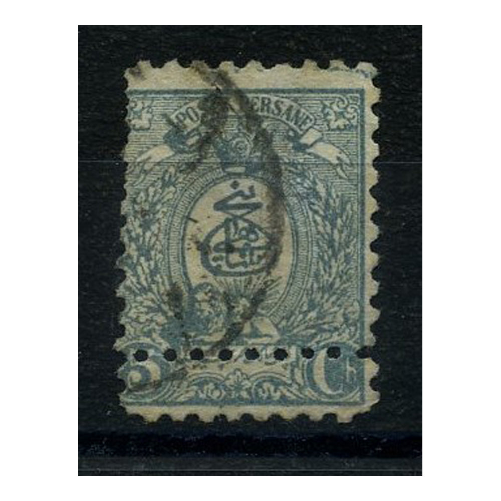 Iran 1889 5ch Definitive, perf 11, MISPERF & PRINTED IN COLOUR OF the 2ch, fine used. SG87var