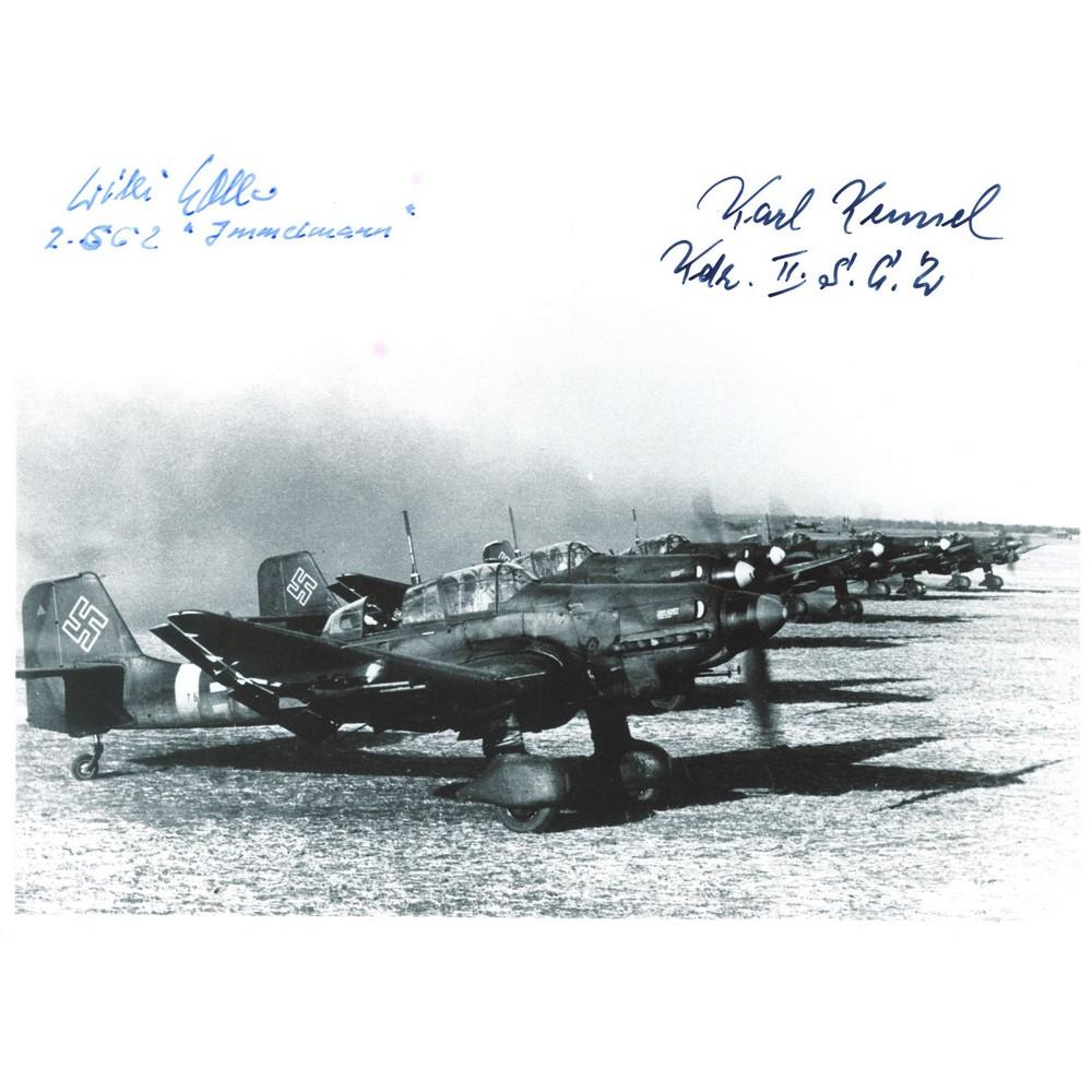 Karl Kennel and Willi Moller. Reproduction WWII photograph depicting a group of 6 Stukas JU87's.