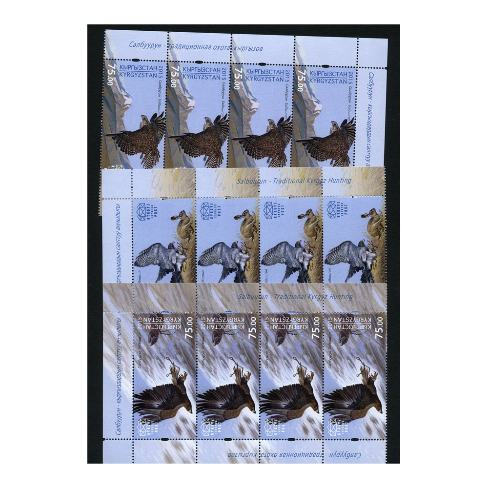 Kyrgystan 2015 Falconary, u/m. SG6-8 x 4 top sheet block