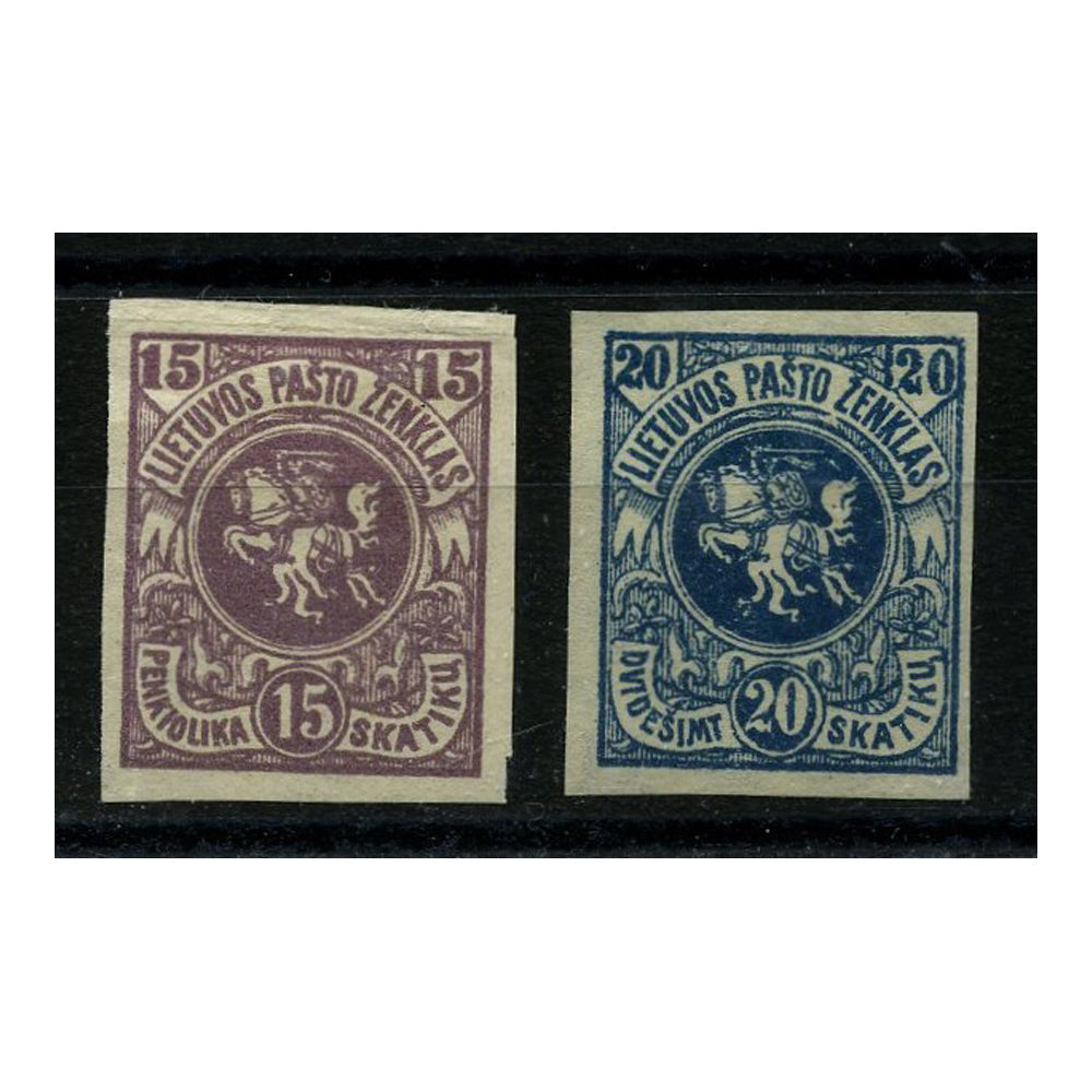 Lithuania 1920-21 Definitive pair, imperf, no wmk, fresh mtd mint. SG61B-62B