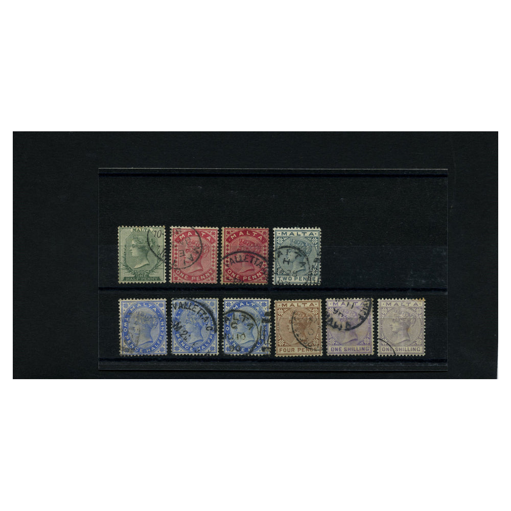 Malta 1885-90 Definitive issue, good to fine cds used, the odd minor fault. SG20-29