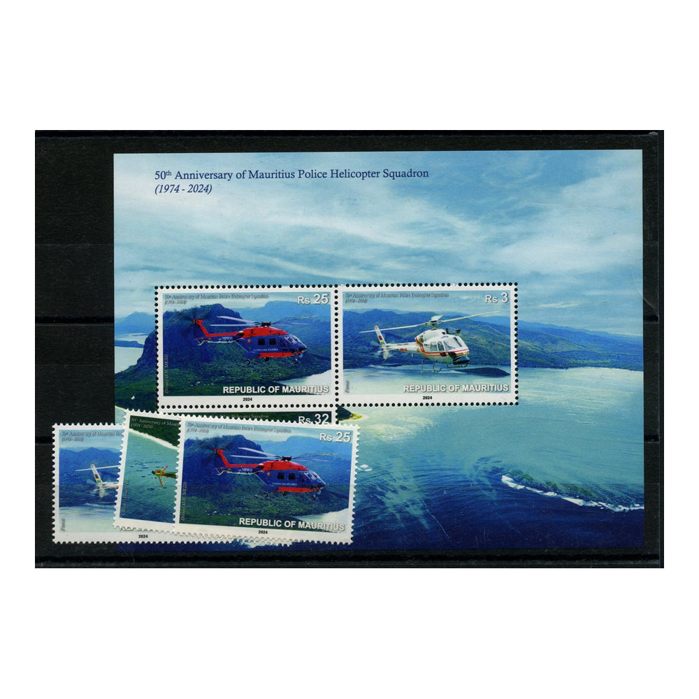 Mauritius 2024 Police helicopters (3v+MS), u/m.