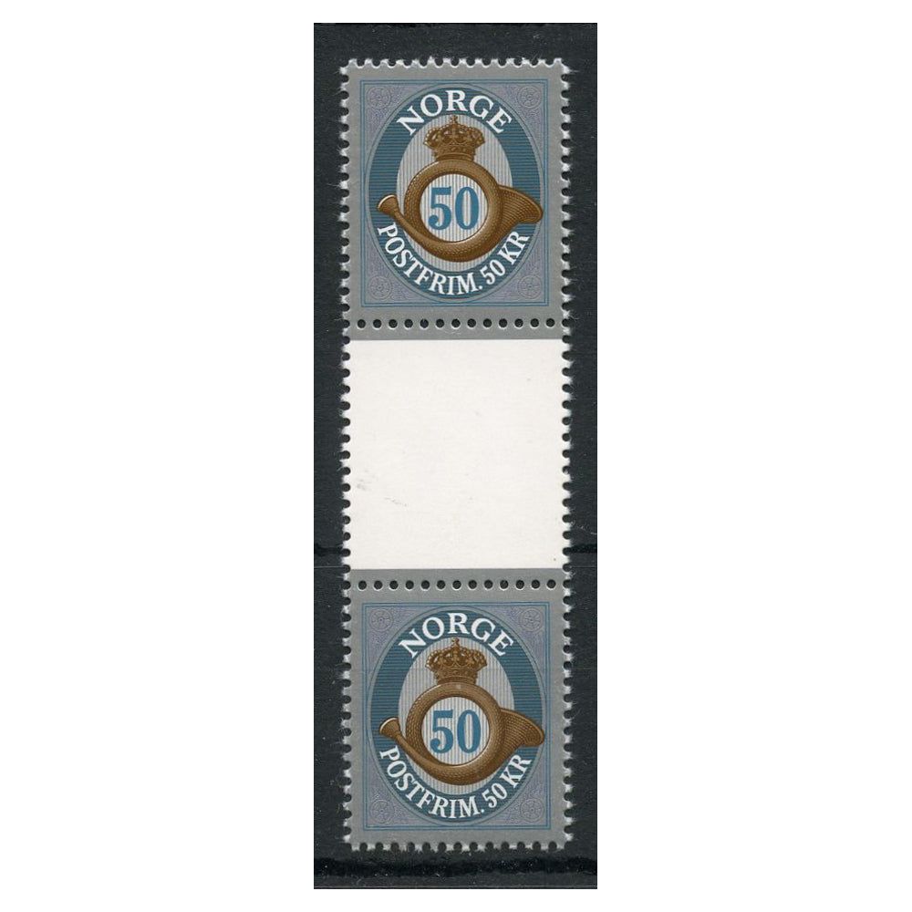 Norway 2014 50kr Posthorn definitive, self-adhesive, vert. gutter pair, u/m. SG1801