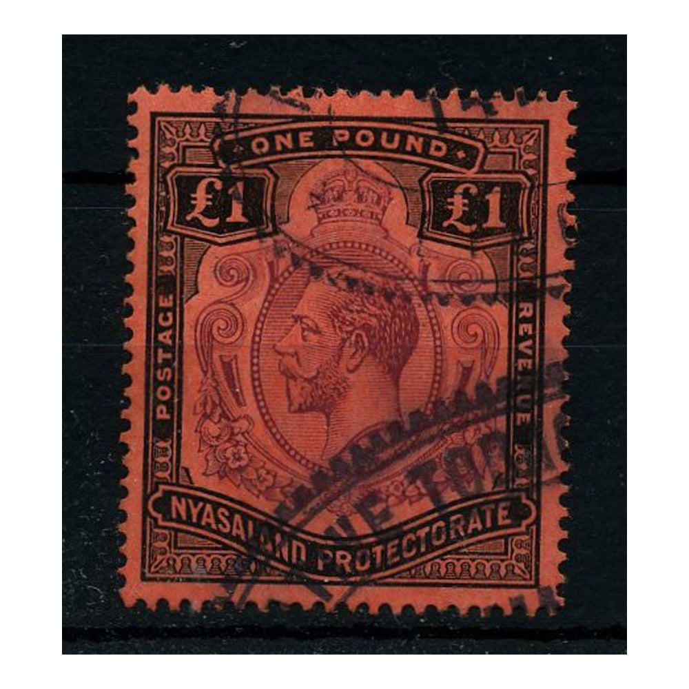 Nyasaland 1913-19 £1 Purple & black/red, fiscally used, cat. £170 (postal). A vibrant example. SG98
