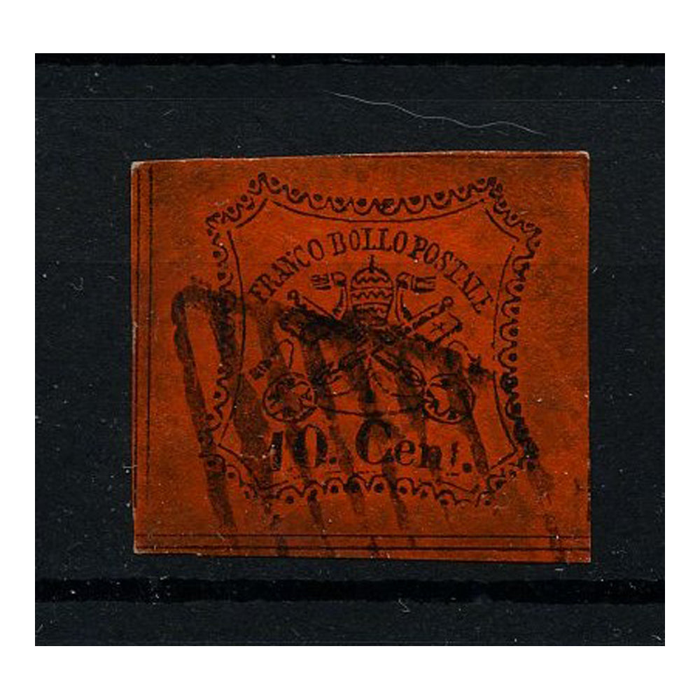 Papal States 1867 10c Vermillion, good to fine used. SG34
