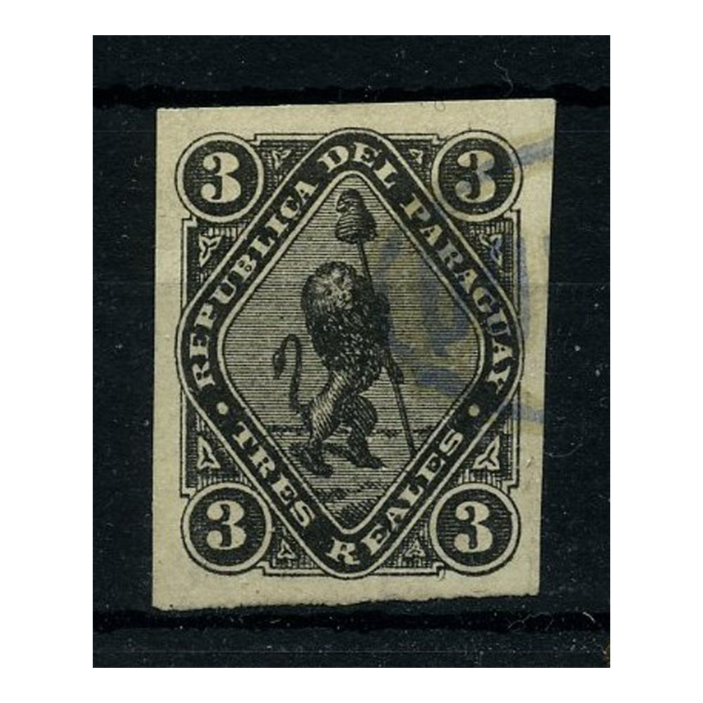 Paraguay 1870 3r Black, 4 large margins, fine light contemporary oval cancel used. SG3