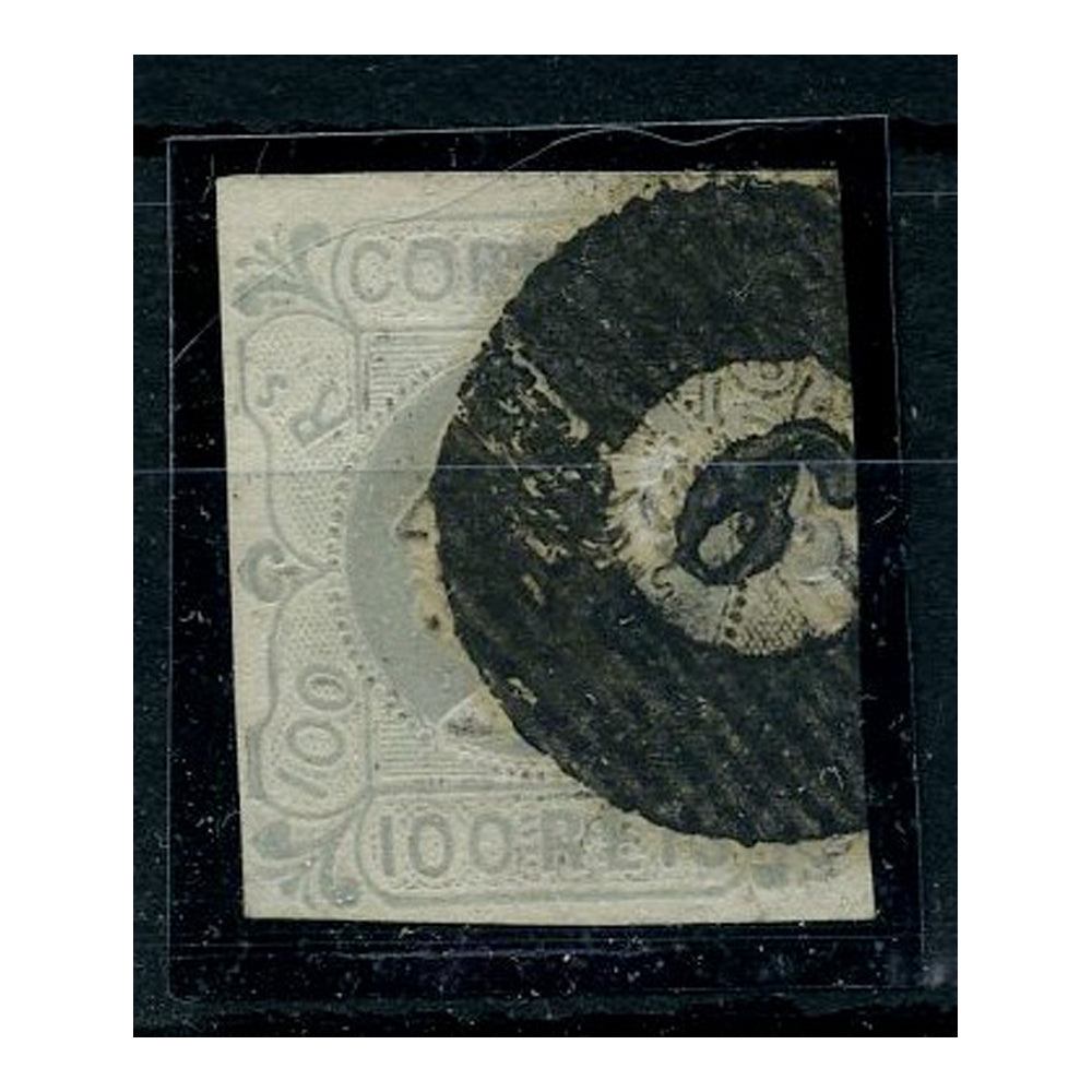 Portugal 1853 100r Pale lilac used with overinked 6 in barred cancel with just 4 margins. SG8