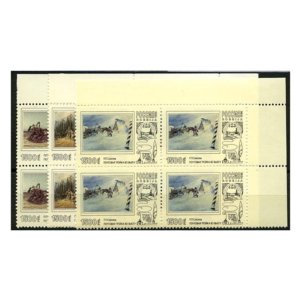 Russia 1996 Paintings, u/m. SG6597-99 x 4 marginal blocks