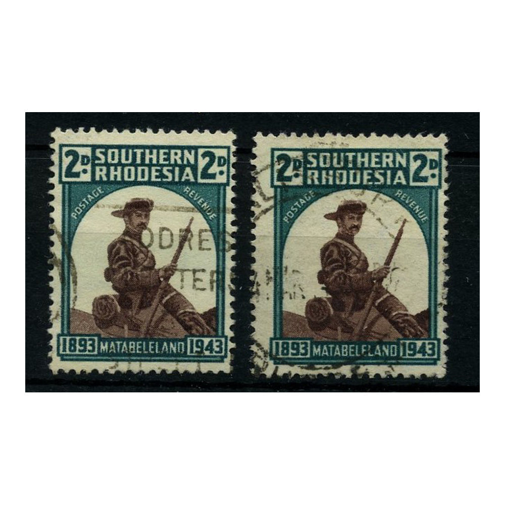 S Rhodesia 1943 Normal & 'hat brim retouch,' both fine used. SG61+a