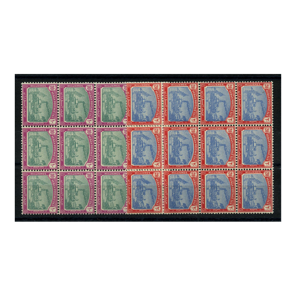 Sudan 1979-80 10m, 20m Re-issue with arms wmk, blocks of 9, u/m. SGD16-17