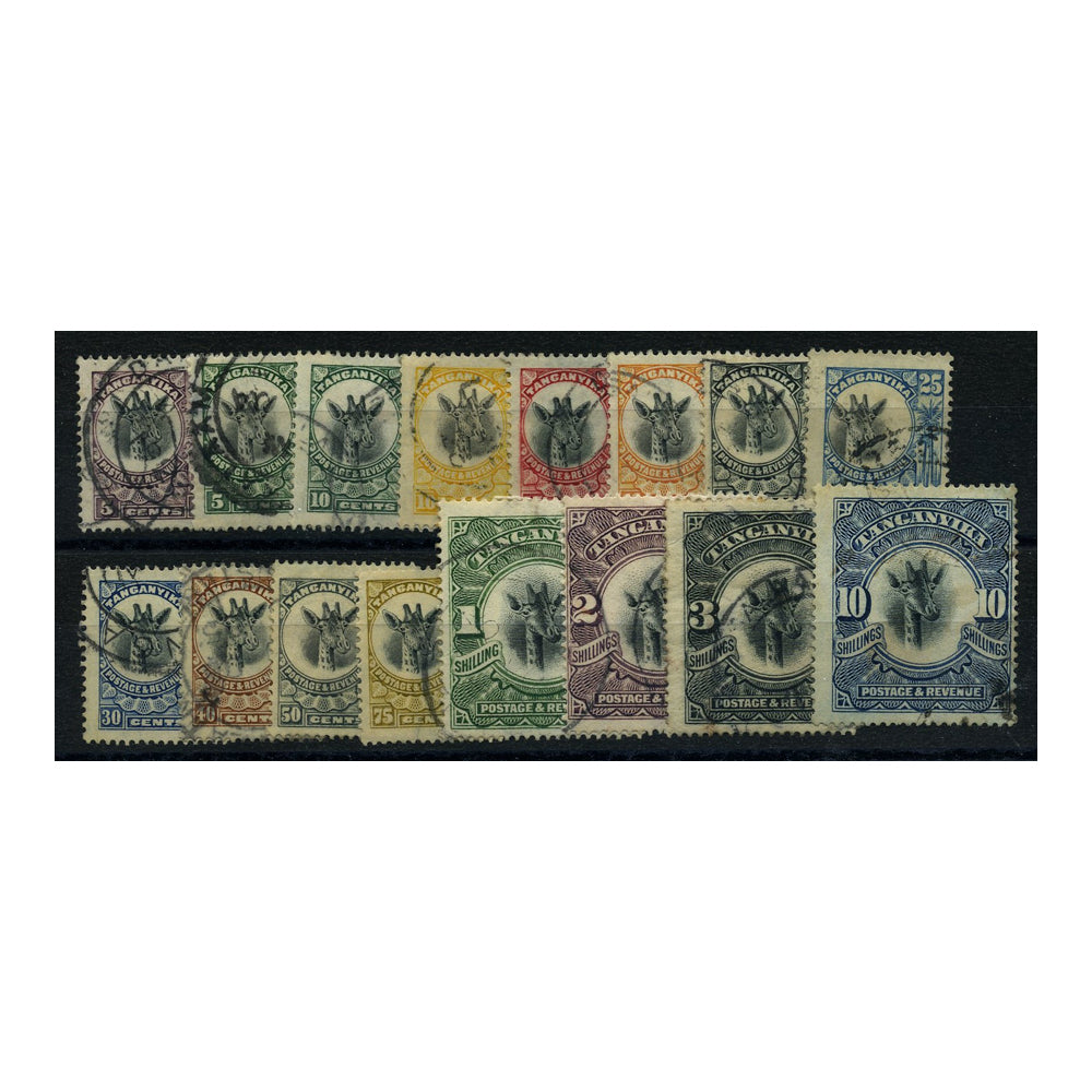Tanganyika 1922-24 Giraffe definitive short set to 10/-, fine cds used. SG74-87