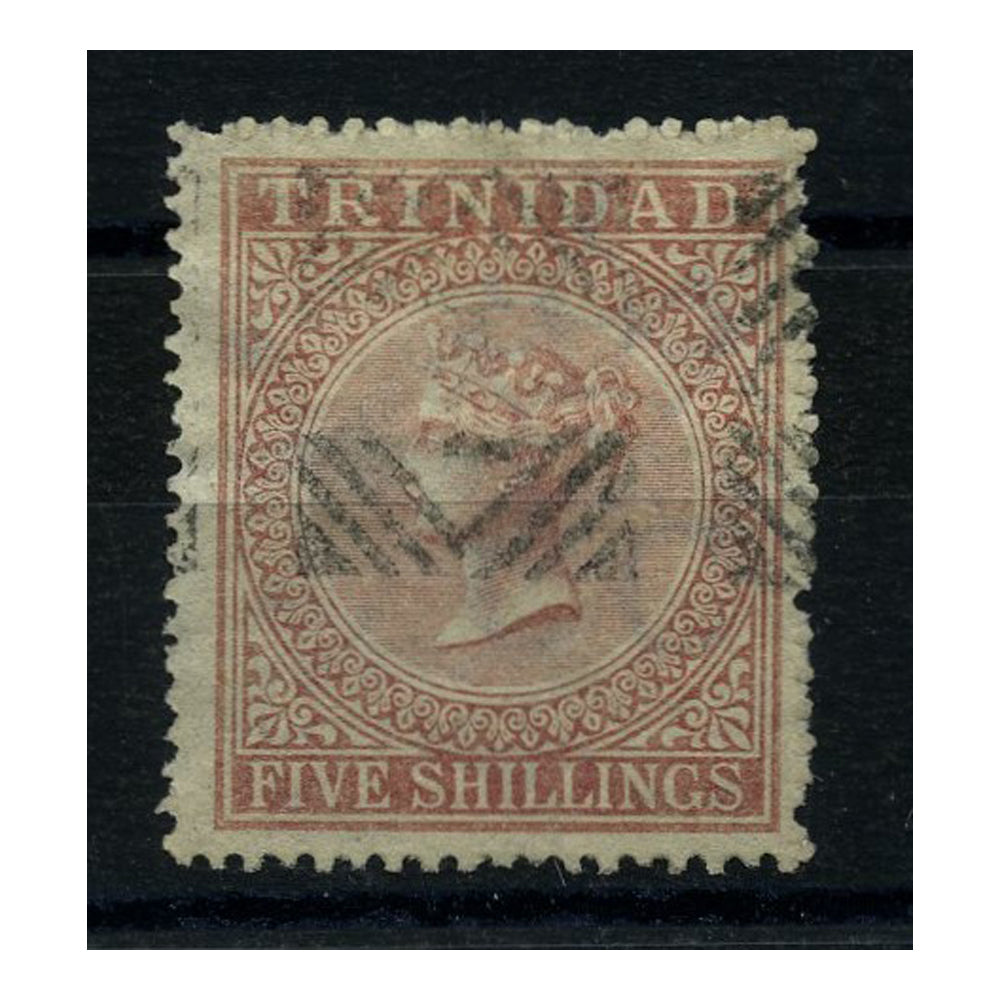 Trinidad 1869 5/- Rose-lake Perf.12_, good to fine used. SG87