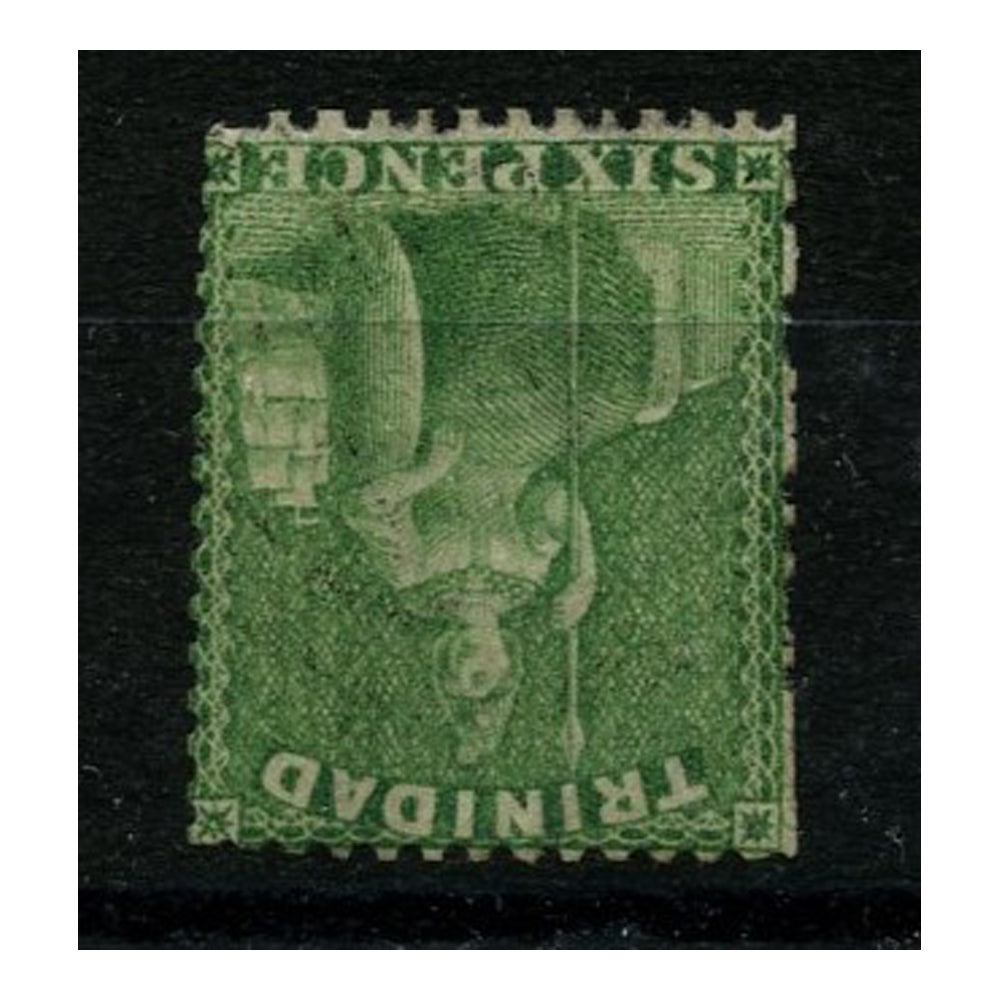 Trinidad 1876-80 6d Bright yellow-green, perf 14, wmk CC INVERTED, fine used. SG77w